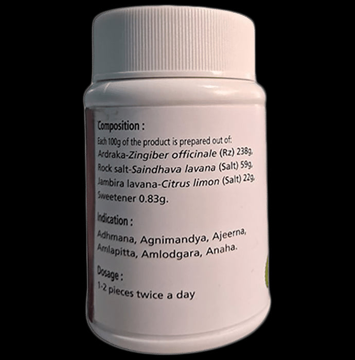 Composition : Ardraka-Zingiber Officinale (Rz), Rock Salt-Saindhava Lavana (Salt), Jambira Lavana-Citrus Limon, Sweetener 0.83g.
