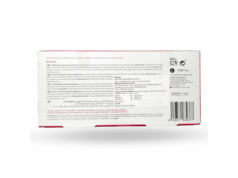 Indulge in BABE Bicalm+ Ampoules, crafted to restore skin's natural balance. With potent ingredients like Licorice extract, Active Oat, and Glycerin, these ampoules offer soothing relief for irritated skin. Experience 24-hour hydration as it diminishes itching, inflammation, and redness. Ideal for sensitive skin, it reduces irritation, leaving your complexion calm, moisturized, and rejuvenated. Treat your skin to BABE Bicalm+ Ampoules for lasting comfort and wellness.