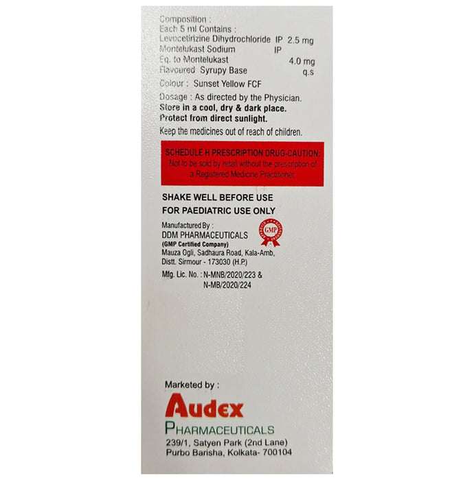 Composition : Levocetirizine (2.5mg/5ml) + Montelukast (4mg/5ml)