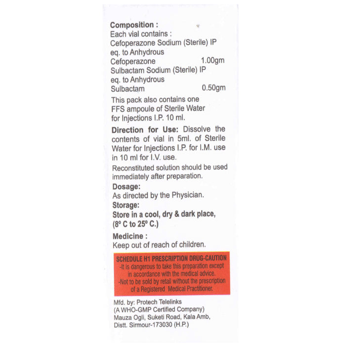 Composition : Cefoperazone (1000mg) + Sulbactam (500mg)