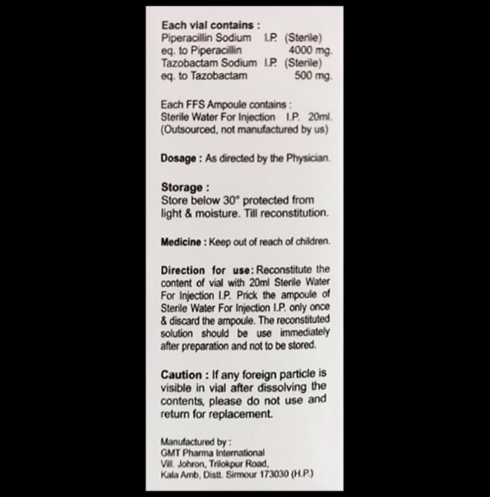 Composition : Piperacillin (4000mg) + Tazobactum (500mg)