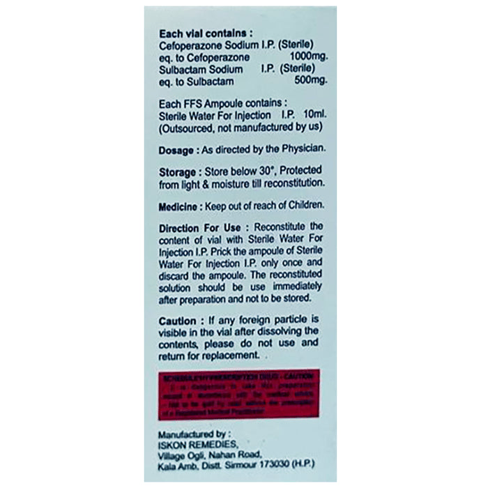 Composition : Cefoperazone (1000mg) + Sulbactam (500mg)