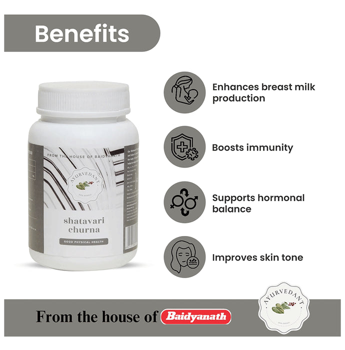Baidyanath Ayurvedant Shatavari Churna can provide the goodness of Shatavari in an easy-to-consume form. It can help to enhance breast milk and skin colour. It can manage general weakness and loss of immunity.