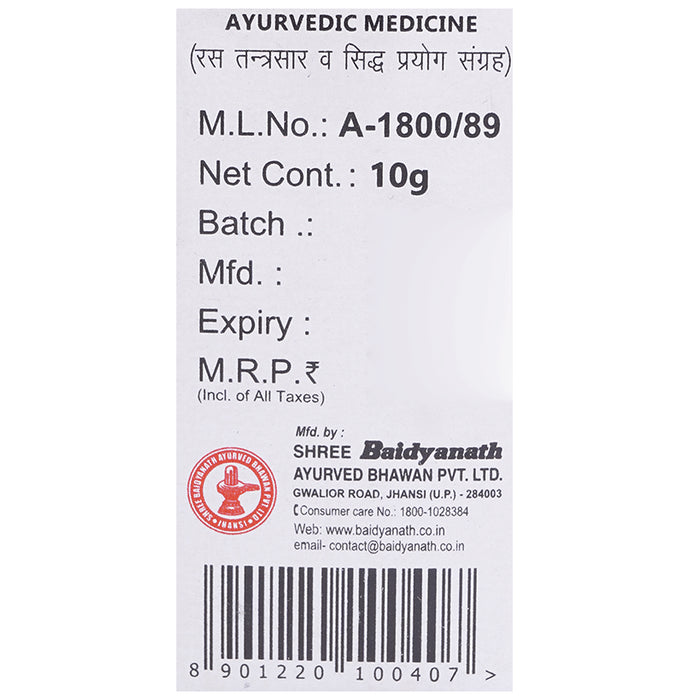 Baidyanath (Jhansi) Akik Bhasma is an Ayurvedic cooling medicine that acts against a number of issues including digestive problems. heart trouble, acidity, heartburn or headache. It may also prove beneficial in eye complaints and infections.
