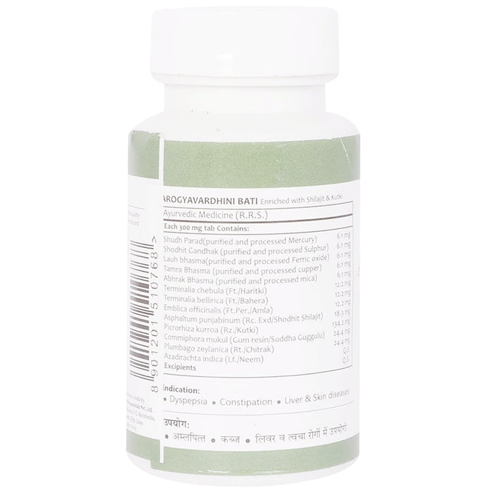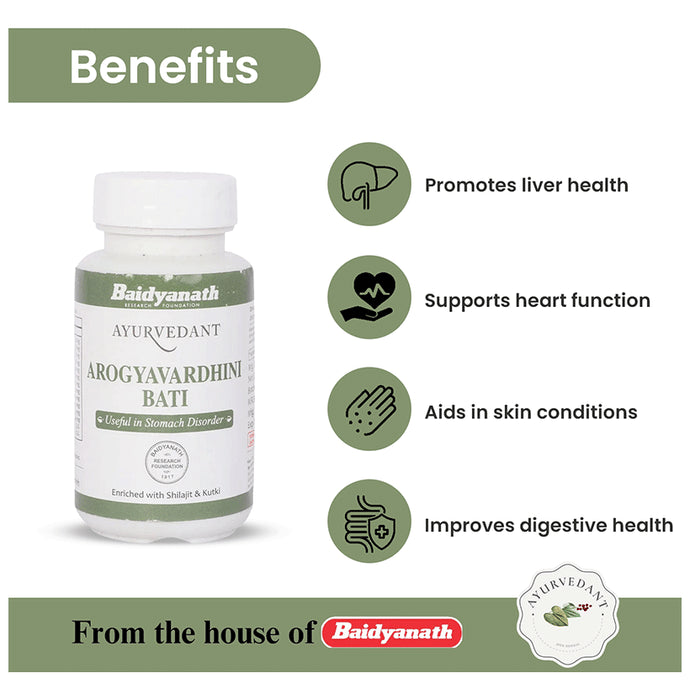 Bhelpyanath (Jhansi) Ayurvedant Arogyavardhini Bati is an Ayurvedic herbal mineral formulation. It is designed to address various types of bodily ailments. Arogyavardhini Bati is often used in Ayurveda for its potential detoxifying properties. It may help eliminate toxins from the body and support overall detoxification processes.