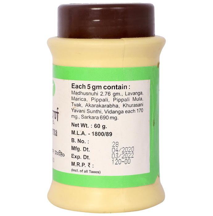 Composition : Chopchini,Mishri,Pipal,Piplamul,Laung,Kalimirch,Akarkara,Khorasani Ajwain,Sontha,Vidanga,Dalchini