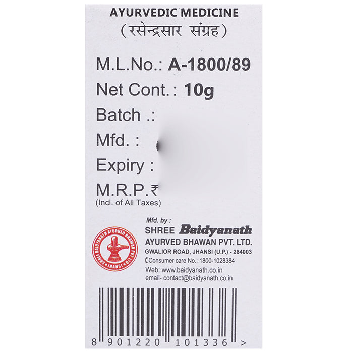 Baidyanath (Jhansi) Kapardak Bhasma is an ayurvedic formulation obtained by calcinating cowries, a carbonate of calcium. It has antacid, alterative, diuretic, anti-diarrheic, digestive and expectorant properties. It may help reduce indigestion, dyspepsia, abdominal pain, peptic ulcer, sprue syndrome, intestinal tuberculosis, cataract, otorrhea, enlarged spleen, liver, asthma and cough.