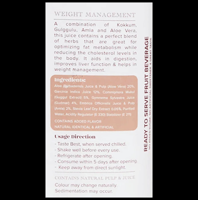 Baidyanath (Jhansi) Kokkum Ready to Drink Juice is a ready-to-drink juice made with a brilliant ayurvedic concoction to quench thirst and help control weight. The HCA ( Hydroxycitric acid ) from Kokum helps in suppressing fatty acid synthesis and lipogenesis, thus aiding in weight loss.