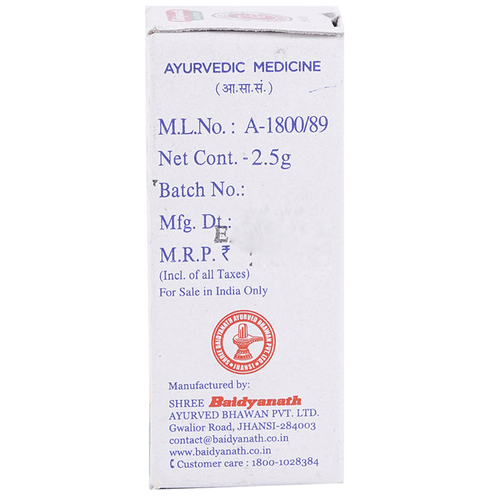 Baidyanath (Jhansi) Manikya Bhasma is an ayurvedic formulation prepared from ruby. It can be effective in dealing with cardiac disorders and oligospermia. It may enhance the digestive fire, thus improving digestive health. It acts as an immunity booster and promotes intellect. This formulation can be beneficial in dealing with respiratory disorders. Moreover, It acts on vata and kapha doshas.