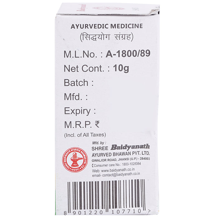 Baidyanath (Jhansi) Shankh Bhasma is an ayurvedic remedy prepared from a conch shell. In ayurveda, shankh bhasma is effective in dealing with diarrhoea (loose stools), acne, pimples, liver enlargement (hepatomegaly), splenomegaly, abdominal pain, indigestion, loss of appetite, heartburn, acid reflux, abdominal distension and irritable bowel syndrome. It has several other health benefits and medicinal uses. It is also known to benefit in various types of inflammations and infections of the intestine.