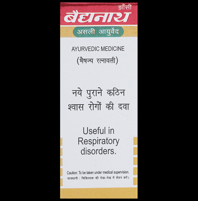 Baidyanath (Jhansi) Swas Chintamani Ras (Vr.) with Gold Pearl is a herbo-mineral ayurvedic formulation that helps improve the heart and lung strength capacity, aiding in improving stamina. It can be beneficial in preventing acute and chronic respiratory issues. It can also help improve functions of the intestine, liver and urinary bladder.