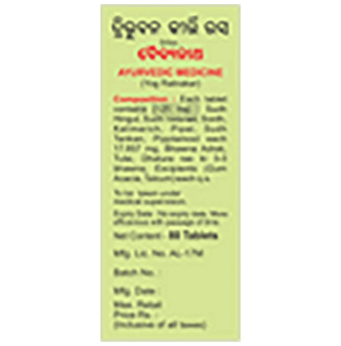 Composition : Shuddha vatsanabha,Maricha,Piper nigrum Linn,Pippali,Suddha hingula,Purified Cinnabar,Tankan Bhasma,Tulsi Kvatha,Ocimum sanctum,Adrak swarasa,Dhatura kwath,Nirgundi kwath
