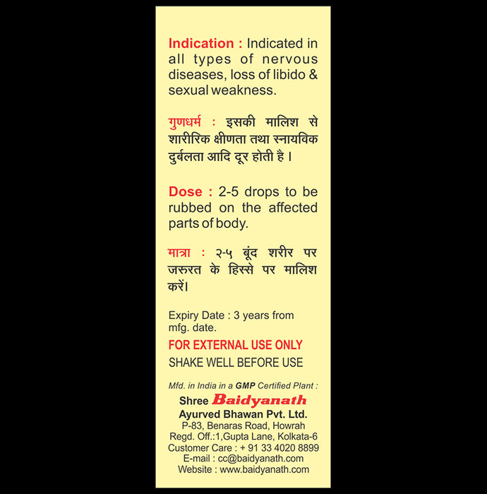 Baidyanath Sri Gopal Tel is a time-honoured ayurvedic formulation crafted to address various nervous weaknesses, loss of libido, and sexual weaknesses. Blending potent natural ingredients, this oil aims to rejuvenate the body, enhance vitality, and restore sexual vigour. Crafted through meticulous traditional processes, it offers a holistic approach to tackle nervous system issues and revitalises sexual health, fostering overall well-being.