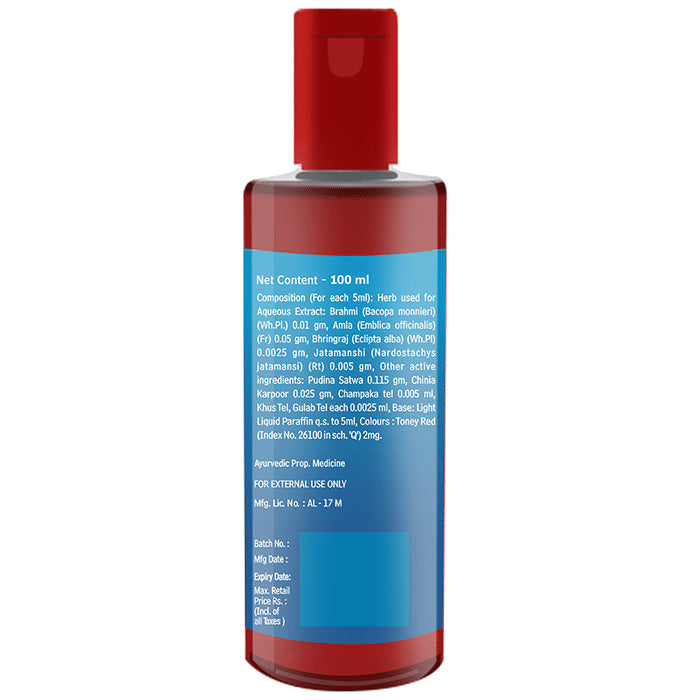 Composition : Brahmi (Bacopa monnieri),Amla (Emblica officinalis),Bhringraj (Eclipta alba),Rose Oil (Rosa damascena),Jatamanshi