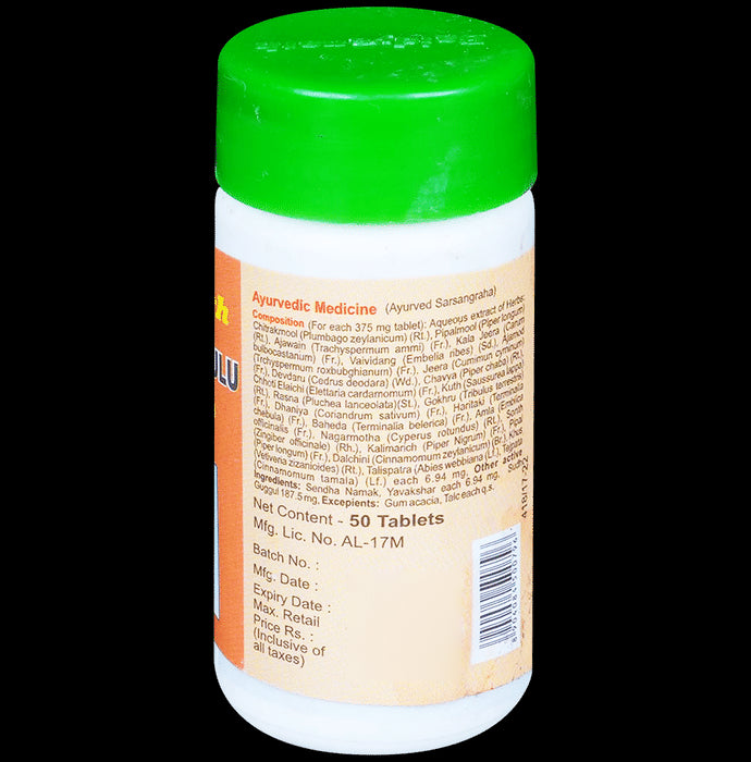 Composition : Gokshura,Chitrak,Guggul,Haritaki,Rasna,Pippali,Cardamom,Triphala