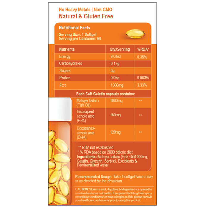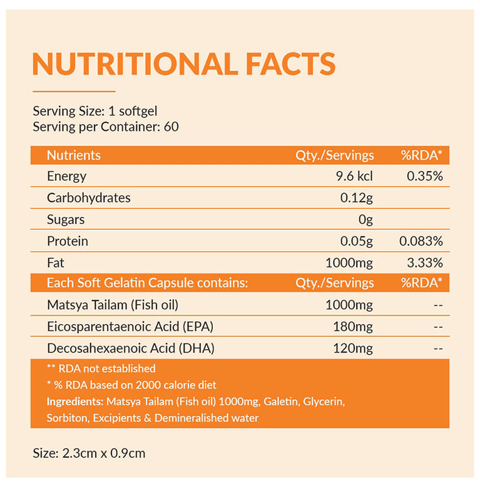 Composition : Matsya Tailam (Fish Oil), Eicosapentaenoic acid (EPA), Docosahex- Benoic acid (DHA)