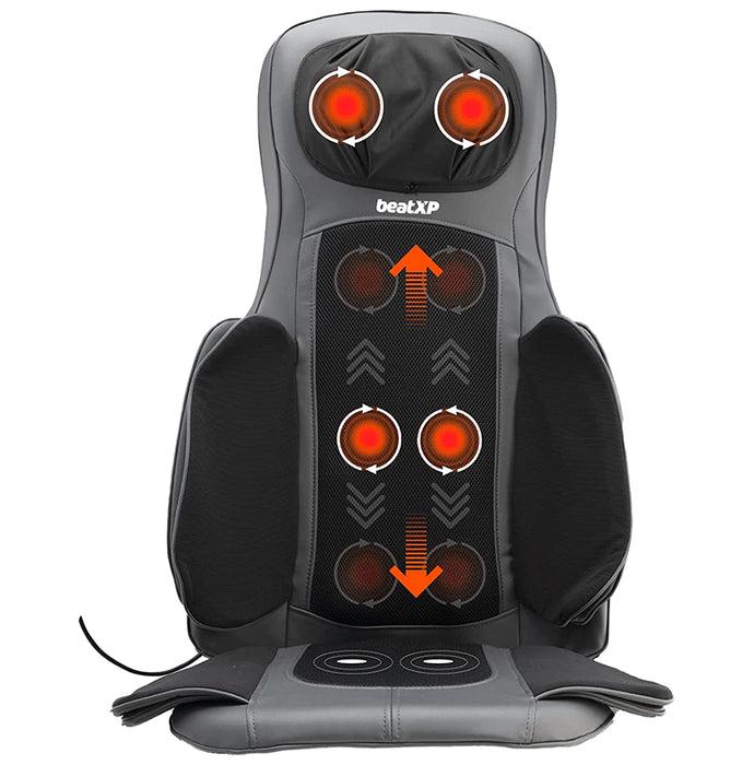 beatXP Powerheal Go Cushion Kneading Massager comes with shiatsu and tapping massage technology. beat XP Powerheal Go Cushion Kneading Massager reduces pain in the neck, shoulder, back, waist, and thighs. It reduces muscle soreness with its soothing heat.Uses:Relaxes the body from pain, soreness, and cramps by providing enough heat and vibration to the strained muscles.Product Specifications and Features:It comes with a programmed controller to assist the user in setting the heat and other features as per their choiceIt provides deep kneading massage to reduce muscle sorenessThis device reduces pain from the neck, back, waist, thighs, and shoulder with its seat vibration technologyIt produces a soothing heat to relax the muscles and promote blood circulationDirections for Use:Follow the instructions on the label.Safety Information:Read the label carefully before usingKeep it clean and sanitisedStore in a cool, dry placeStay away from physical damage