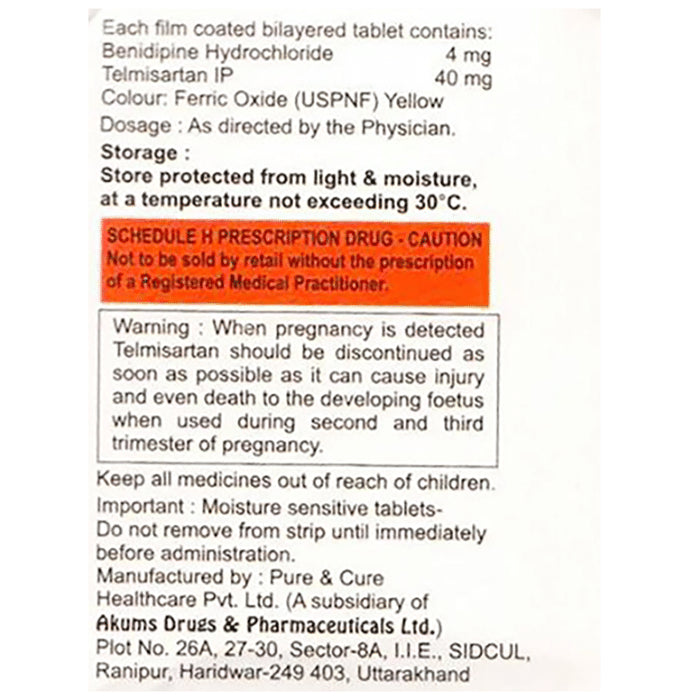 Composition : Benidipine (4mg) + Telmisartan (40mg)