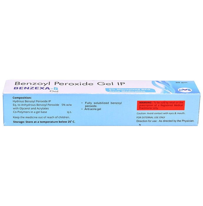 Benzexa 5 Gel is an organic compound. It has a keratolytic property, i.e., it even out the uneven skin. When applied on acne, it releases oxygen which kills the bacteria. This is how it works to cure your acne.