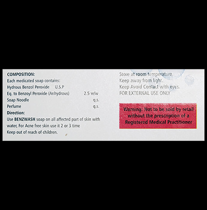 Benzwash Soap is an organic compound. It has a keratolytic property, i.e., it even out the uneven skin. When applied on acne, it releases oxygen which kills the bacteria. This is how it works to cure your acne.