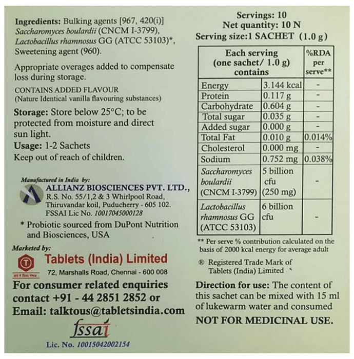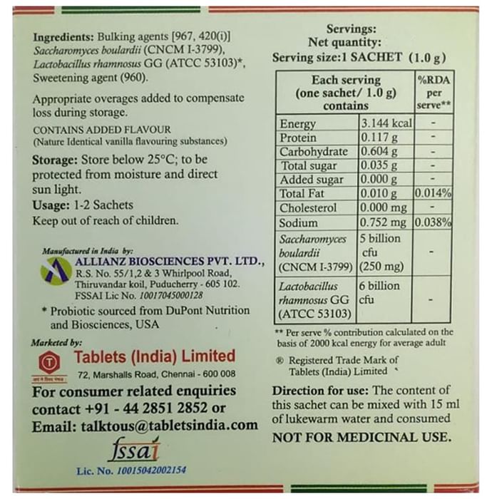 Bifilac GG Duo Sachet VanillaIt is a probiotic supplement to manage diarrhoea and improve and restore the natural microflora. It may also manage irritable bowel syndrome and inflammatory bowel disease.