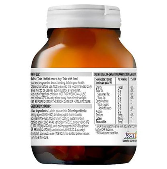 Blackmores Blue Light Defence Tablet contains a blend of antioxidants lutein and zeaxanthin that promote eye retina and macula health. It helps promote macula density and helps filter and protect against high-energy, harmful blue light.Blue Light Defence supports optimal eye function. It protects the eyes from free radical damage by blue light by rejuvenating the light-sensitive cells in the retina. Besides, it promotes a daily boost of protective natural carotenoids. It also helps maintain general health and wellbeing.Blue Light Defence is a scientifically researched formula that is gentle on your body. It is available in a convenient once-a-day dose. It has no added preservatives, flavours or sweeteners.At Blackmores, we spread happiness and health in the form of natural naturopathic medicines. We go the extra mile to get the ideal form of the active ingredient(s) to be the most highly absorbed and gentle on the body. We have been spreading our reach to Asia and now we are here to help Indians be better every day!