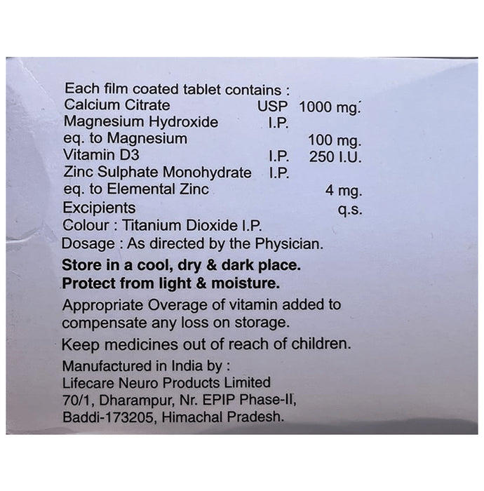 Composition : Calcium Citrate,Magnesium Hydroxide,Zinc,Vitamin D3
