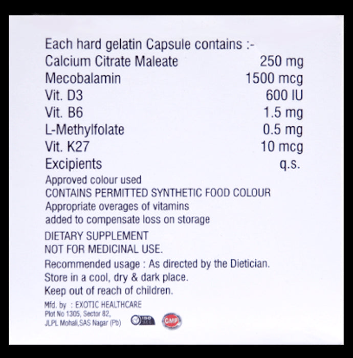 Composition : Calcium citrate maleate,L-methylfolate,Vitamin D,Methycobalamine,Vitamin K2-7