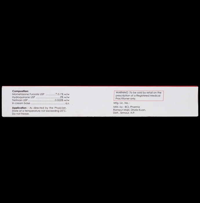 Composition : Hydroquinone (2% w/w) + Mometasone (0.1% w/w) + Tretinoin (0.025% w/w)