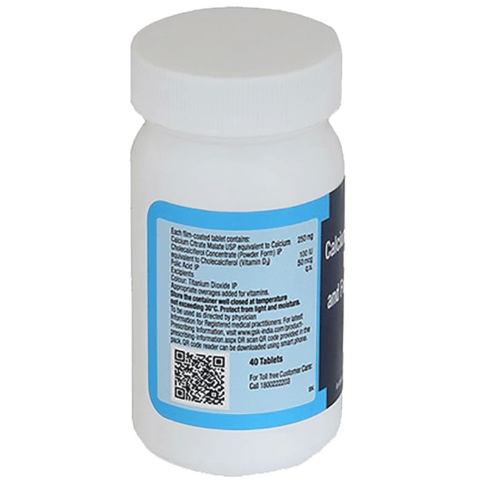 Composition : Calcium Citrate Malate (250mg) + Vitamin D3 (100IU) + Folic Acid (50mcg)