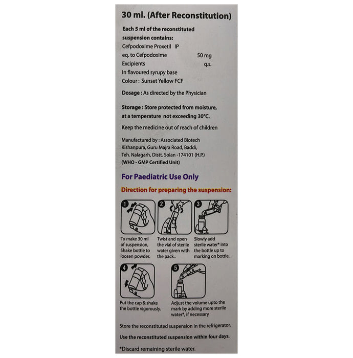 CE-Dexim Dry Syrup is an antibiotic medicine. It is commonly given to children for the treatment of a wide range of bacterial infections targeting the ears, eyes, nose, throat, lungs, skin, gastrointestinal tract, and urinary tract. It is also effective in treating typhoid fever in children and adolescents. Give this medicine to your child an hour before or two hours after meals. If your child develops a stomach upset, prefer giving it with food. Make sure to stick to the prescribed dose because it is given keeping in mind the type of infection, its severity, and the age and bodyweight of your child. In case your child gags and expels the medicine within 30 mins of intake, repeat the same dose but do not double dose if it's the time for the next dose.Do not give this medicine to your child in case of cold and flu symptoms as this medicine is an antibiotic and doesn’t work on infections caused by viruses. Doctors prescribe this medicine for cough and cold only when they detect any underlying secondary bacterial infection.Some of the minor and temporary side effects of this medicine include vomiting, diarrhea, nausea, rash, and headache. Usually, these episodes subside once your child’s body adapts to the medicine. However, if these effects persist or become bothersome for your child, call the doctor right away.Narrate your child’s complete medical history to your child’s doctor, including any previous episodes of allergy, heart problem, blood disorder, birth defects, airway obstruction, lung anomaly, gastrointestinal problem, skin disorder, liver impairment, and kidney malfunction. This information is critical for dose alterations and for planning your child’s overall treatment.
