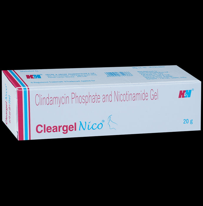 Cleargel Nico Gel is a combination of two medicines: Clindamycin and Nicotinamide, which treats pimples (acne). Clindamycin is an antibiotic which works by penetrating into the skin and killing acne-causing bacteria. Nicotinamide is a form of vitamin B. It exerts anti-inflammatory effects when applied to the skin and reduces swelling, redness and tenderness associated with acne.