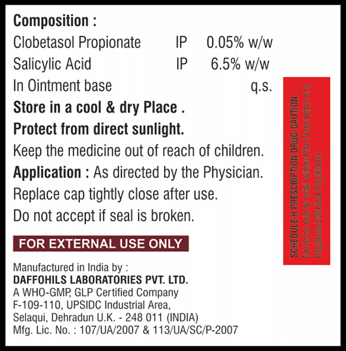 Composition : Clobetasol (0.05% w/w) + Salicylic Acid (6.5% w/w)