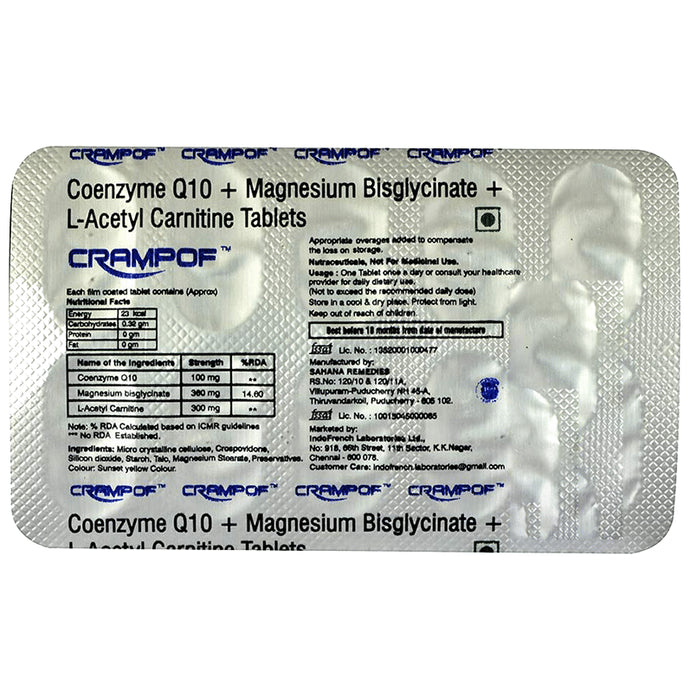 Crampof Tablet is specially made to provide relief from cramps. It reduces oxidative stress in the cells and limits the incidence of muscle spasms.