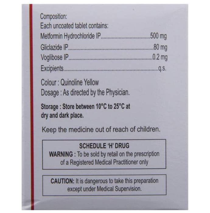 Composition : Voglibose (0.2mg) + Metformin (500mg) + Gliclazide (80mg)