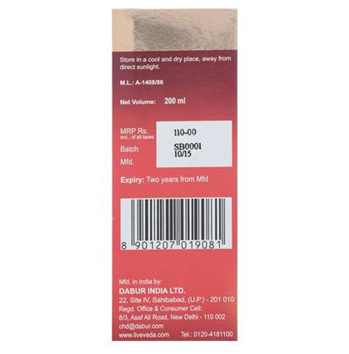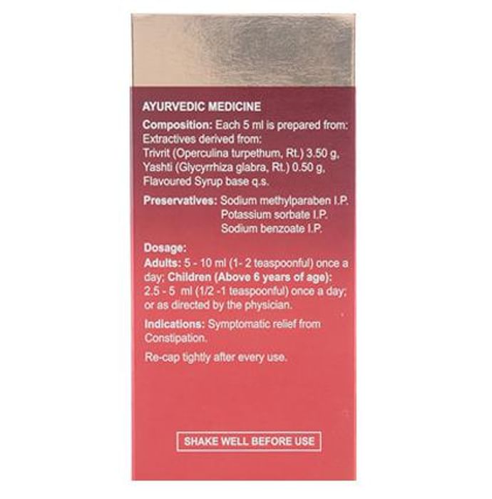 Dabur Laxirid Syrup is an ayurvedic formulation.Key benefits/uses of Dabur Laxirid Syrup:- Provides symptomatic relief from constipation by regulating bowel movement and reducing flatulence and constipationDirection for use/Dosage:- Adults: 1-2 teaspoonful (5-10ml), once a day - Children (above 6 years of age): ½-1 teaspoonful (2.5-5ml) once a day- As directed by the physicianStorage instructions:- Store in a cool, dry & dark place- Protect from direct SunlightSafety information:- Read the label carefully before use - Do not exceed the recommended dose - Keep out of the reach and sight of children