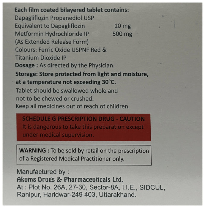 Composition : Dapagliflozin (10mg) + Metformin (500mg)