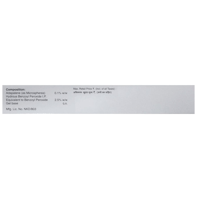 Composition : Adapalene (0.1% w/w) + Benzoyl Peroxide (2.5% w/w)