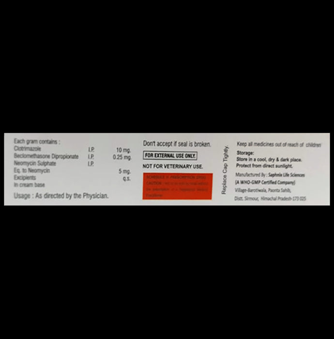 Composition : Beclometasone (0.25mg) + Neomycin (5mg) + Clotrimazole (10mg)