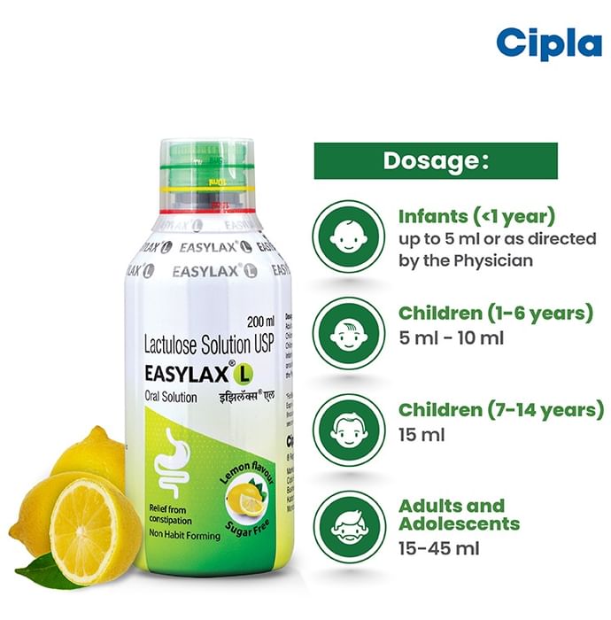Easylax L Oral Solution Lemon Sugar-Free is a laxative containing Lactulose. It can provide long-term relief from long-term constipation. Lactulose works by drawing water into the bowels thereby making stools softer and easy to pass to provide relief from constipation.Lactulose also has prebiotic effect. It stimulates the growth of health-promoting bacteria in the gastrointestinal tract.