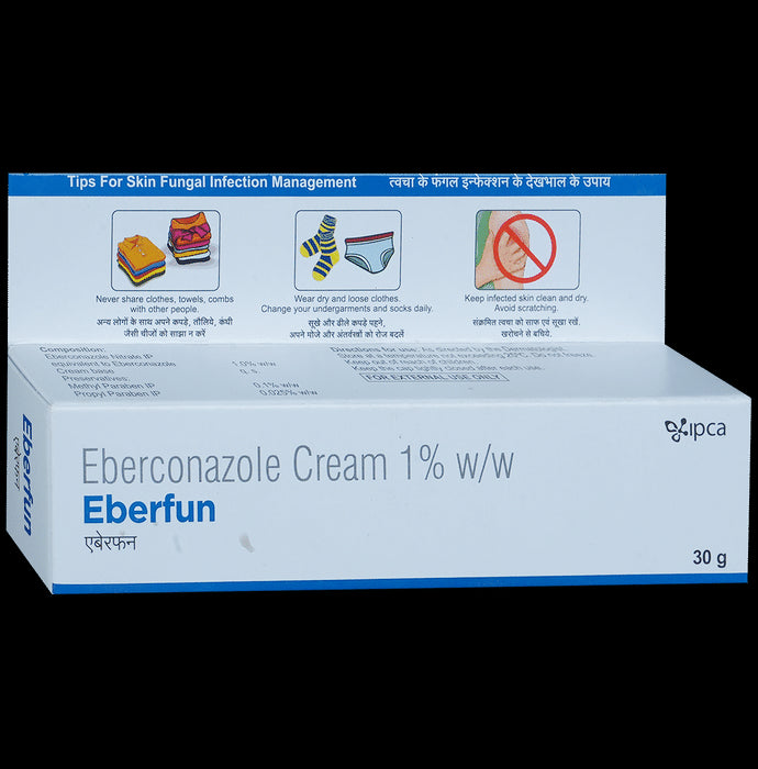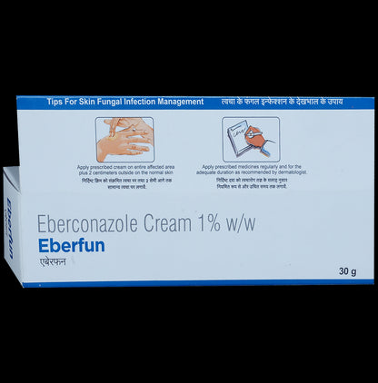 Eberfun Cream is an antifungal medication. It kills and stops the growth of the fungi by destroying its cell membrane, thereby treating your skin infection.
