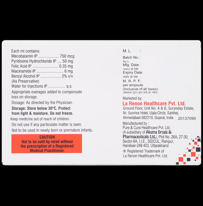 Composition : Methylcobalamin (750mcg) + Vitamin B6 (Pyridoxine) (50mg) + Nicotinamide (6mg) + Folic Acid (0.35mg)
