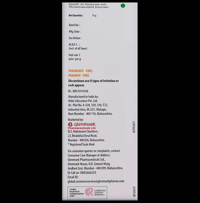 Episoft AC Sunscreen SPF 30 | Lightweight & Paraben Free Cream