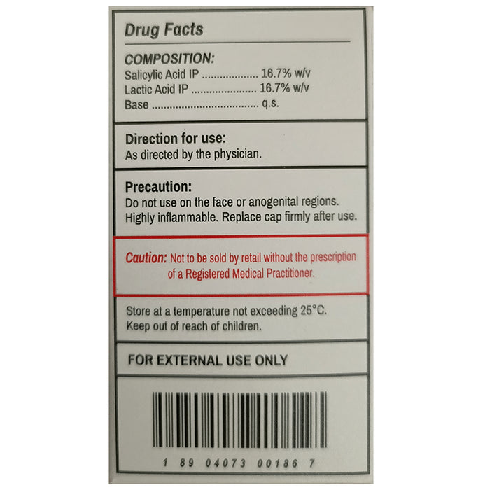 Composition : Salicylic Acid (16.7% w/v) + Lactic Acid (16.7% w/v)