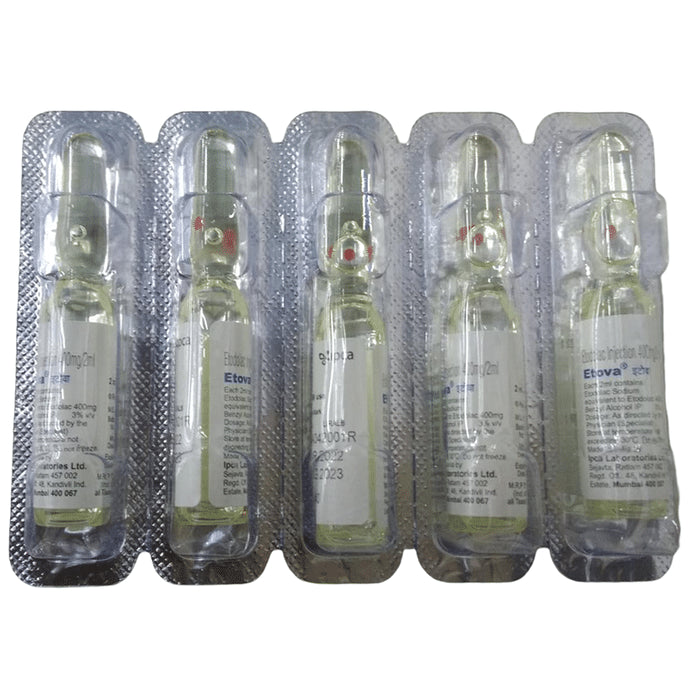 Etova Injection is a pain-relieving medicine. It effectively alleviates pain and inflammation in conditions like rheumatoid arthritis, osteoarthritis, and acute pain. It is given in cases where oral administration is not possible. Etova Injection is administered as an injection by a healthcare professional. Kindly do not self-administer. Inform your doctor if you have any history of heart disease or stroke. Please consult your doctor in case any injection site reactions like pain, swelling, or redness are observed. Vomiting, stomach pain, nausea, and indigestion are some of the common side effects that might be observed on taking this medicine. It may also cause dizziness, drowsiness, or visual disturbances. Your doctor may regularly monitor your kidney function, liver function, and levels of blood components if you are taking this medicine for long-term treatment. Long-term use may lead to serious complications such as stomach bleeding and kidney problems.