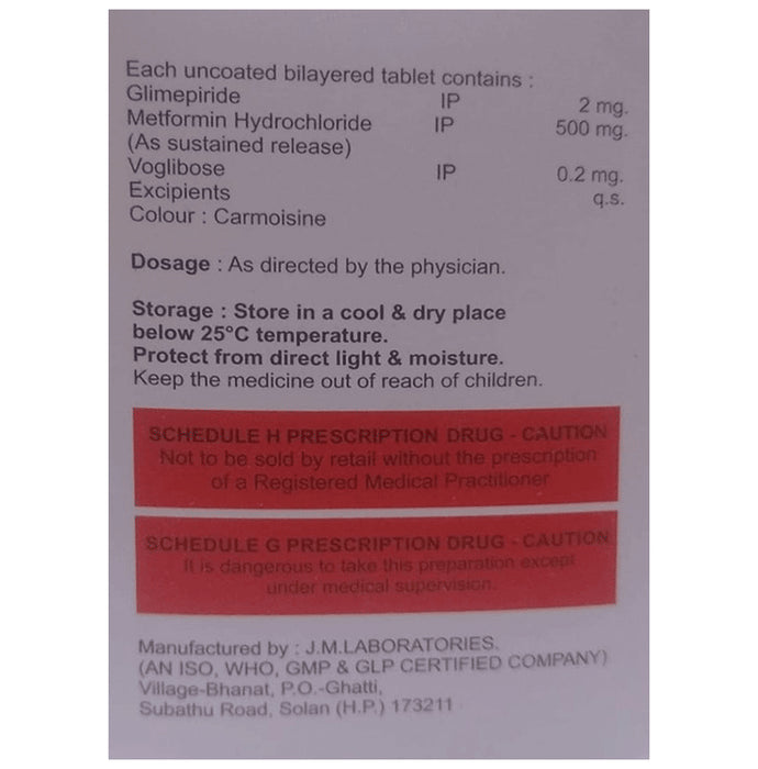 Composition : Glimepiride (2mg) + Metformin (500mg) + Voglibose (0.2mg)