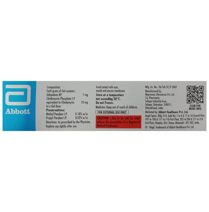 Composition : Adapalene (0.1% w/w) + Clindamycin (1% w/w)