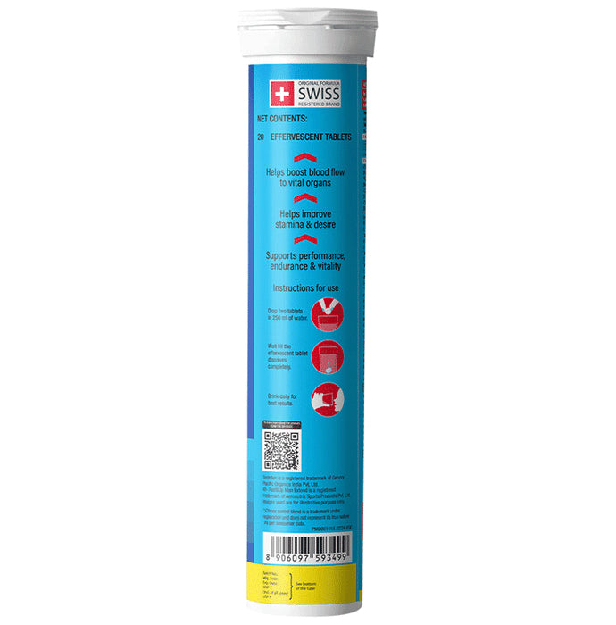 FastandUp Man Extend Effervescent Tablet Fizzy Peach FastandUp Man Extend is a well-researched product with 810 mg of high-quality nitric oxide booster blend that contains a combination of L-Arginine, L-Citrulline DL Malate and, L- ornithine hydrochloride, that helps stimulate blood flow. It also contains energizing blend that contains black pepper extract, brahmi extract, fenugreek extract (Testofen®), and Shatavari extract that supports healthy stamina. It is made with Swiss effervescent technology for faster action and absorption, contains zero sugar, is 100% vegetarian, comes in a fizzy peach flavour and is very gentle on the stomach.