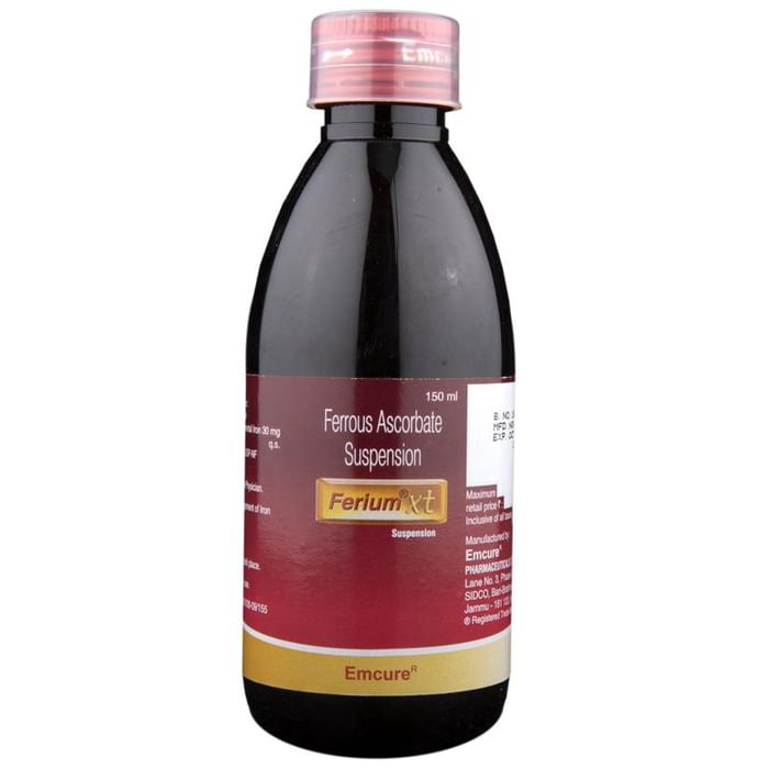 Ferium XT Suspension contains Ferrous Ascorbate as the active ingredient. It is a combination of of iron and vitamin C. Iron works by replenishing the iron stores in your body and helps correct iron deficiency anemia. Vitamin C (ascorbate) is added to enhance the absorption of iron in the body. Iron transports oxygen throughout the body and maintains red blood cells, thus making an individual feel energetic and aiding in preventing anemia.