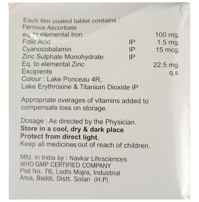 Composition : Ferrous ascorbate,Folic acid,Cyanocobalamin,Zinc